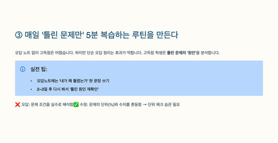 ③ 매일 ‘틀린 문제만’ 5분 복습하는 루틴을 만든다