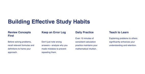 수학에서 습관은 실력보다 중요합니다. Algebra를 잘하려면 다음 습관을 가지면 좋습니다.