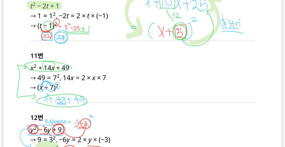 전개 후 다시 인수분해로 되돌리는 ‘왕복 계산’ 훈련.