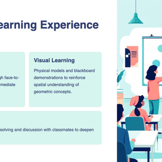 실물 모형과 칠판을 활용한 시각적 개념 학습.