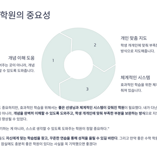 "수학을 단순히 암기하는 게 아니라, 스스로 생각할 수 있도록 도와주는 학원이 정말 중요하다."